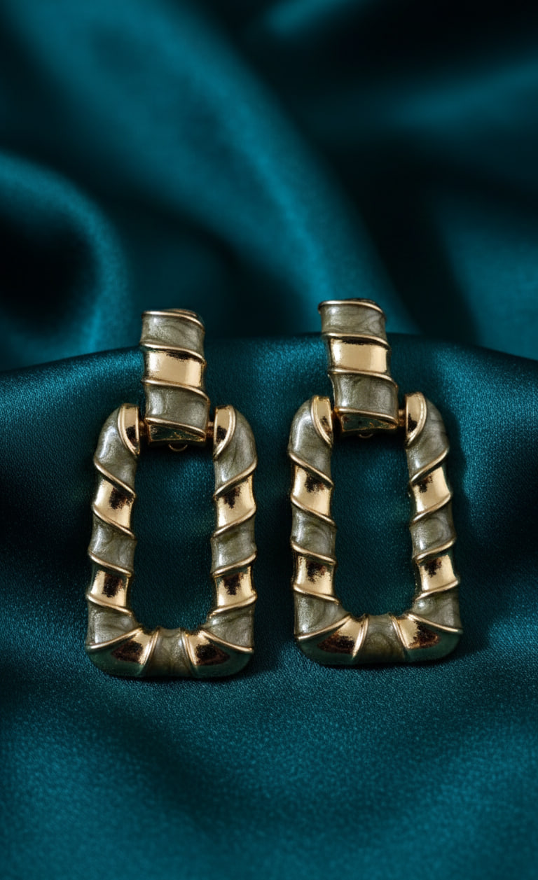 Rectangle grey & gold earring